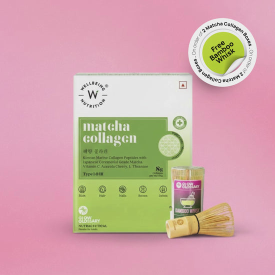 India’s first Matcha Collagen that combines 8g of Marine Collagen Peptides (<1000 Daltons) with 1.8g of Ceremonial Grade Matcha to restore skin radiance, texture, and elasticity while delivering clean, sustained energy without the jitters. Enriched with Acerola Cherry, Vitamin C, and L-Theanine, it supports youthful glow, stronger hair and nails, and promotes a calm, focused mind with a natural energy lift.