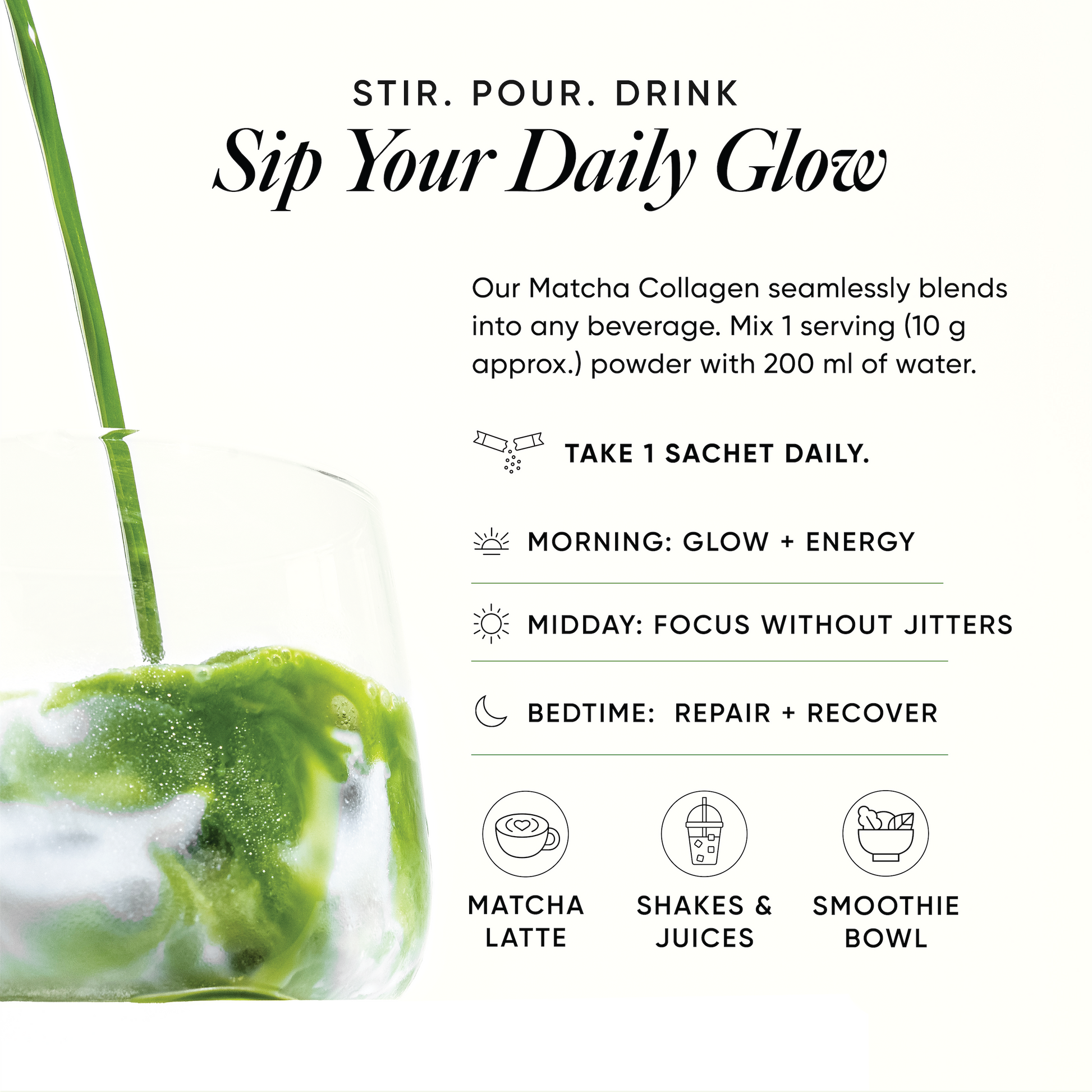 Our The Collagen Ritual Set is truly delicious and seamlessly blends into any beverage. To prepare, mix 1 serving (10 g approx.) powder with 200 ml of water. You can consume it anytime of the day. For best results, take consistently for 12 weeks.